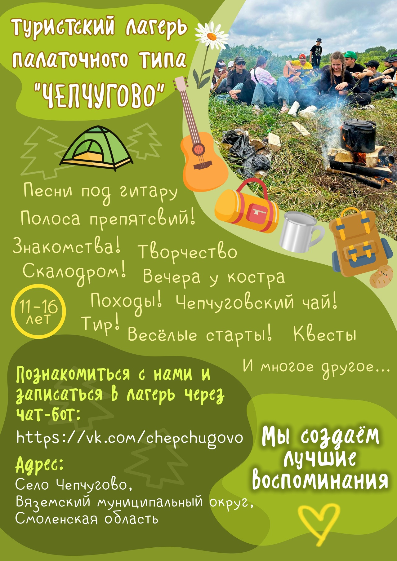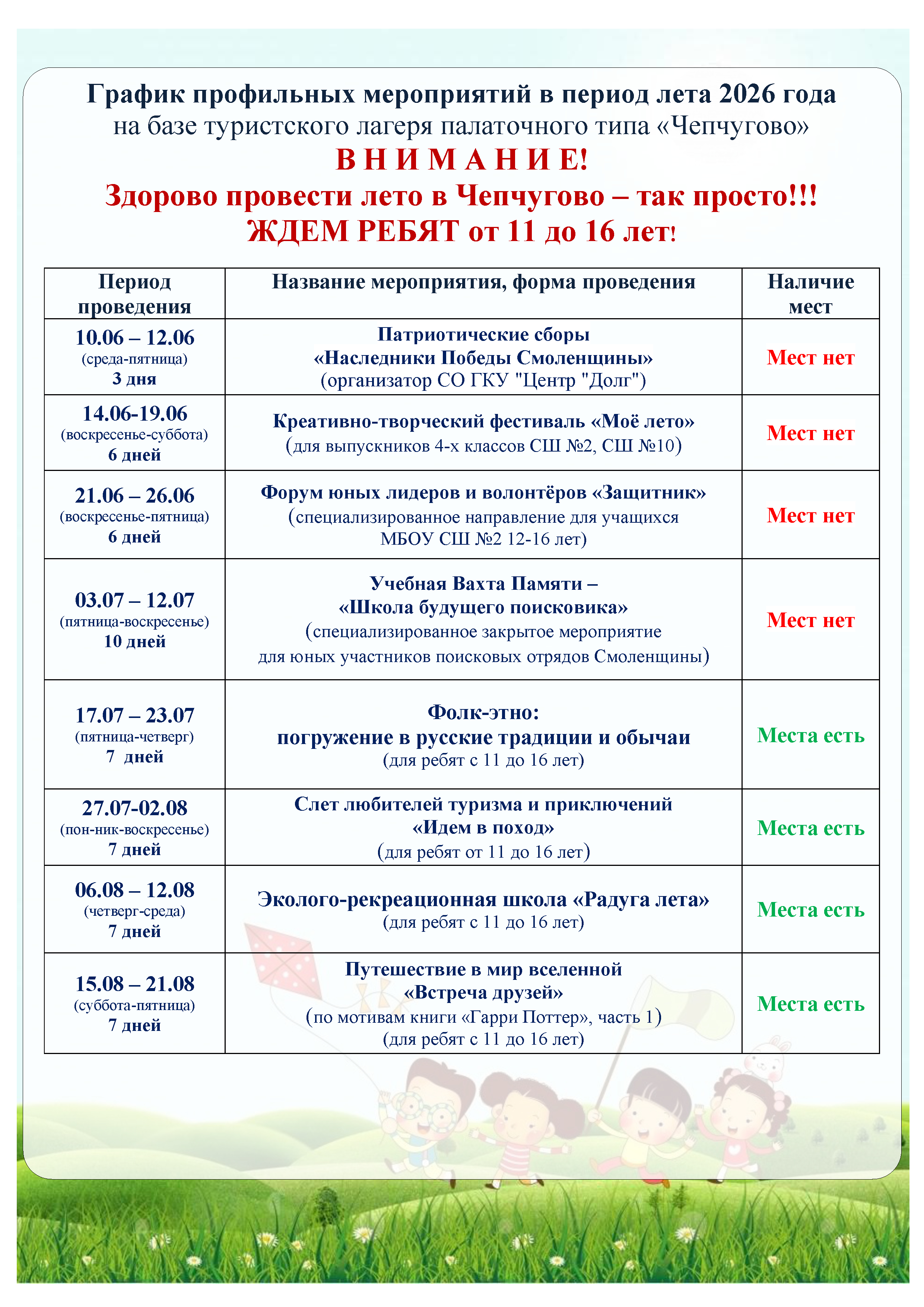 Внимание! Т.к. набор в туристский лагерь палаточного типа "Чепчугово" ограничен, то просьба документы подать до 20 мая 2026 года.